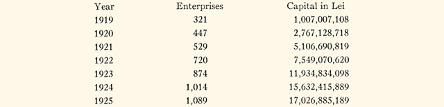 It is evident from the figures shown that the number of industrial enterprises and the capital engaged in them have increased perceptibly since the end of the war. While there can be no misunderstanding as to the number of establishments, the capital invested needs explanation. In taking into account the monetary depreciation which set in, the value of the investments from year to year cannot be mathematically established unless it is compared with the purchasing power of the leu-gold. The major part of new capital was absorbed in re-investment; this being so, it is evident that the value of these investments calculated at the present rate of exchange is in excess of their real value. This temporary condition demonstrates the difficulty of making an exact evaluation of our industry while the currency remains unstable. |